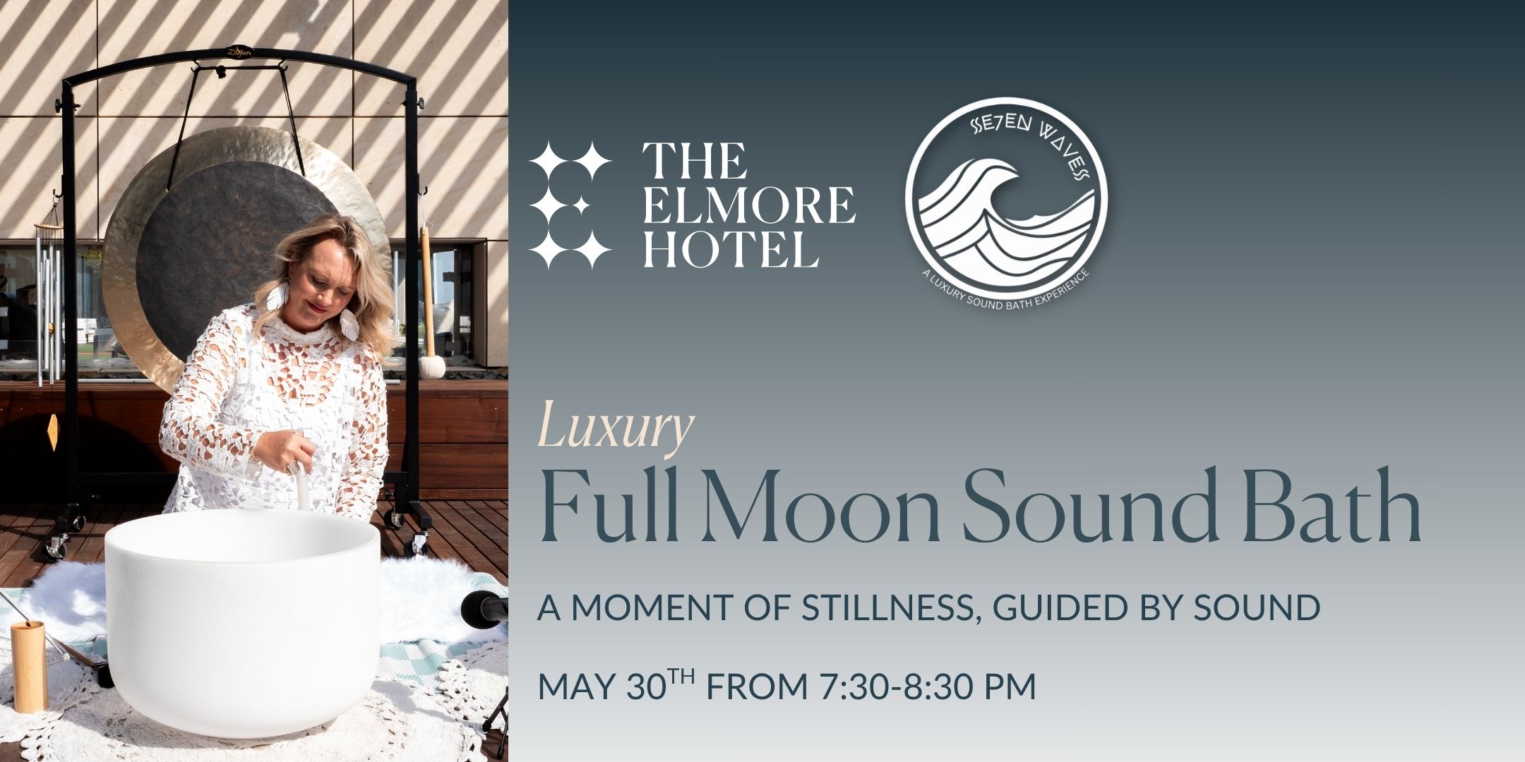 Beneath the glow of the full moon, find your moment of stillness at The Elmore Hotel. Join us May 30 from 7:30–8:30 PM for a guided sound bath experience led by Se7en Waves, an hour designed to restore, reset, and reconnect.