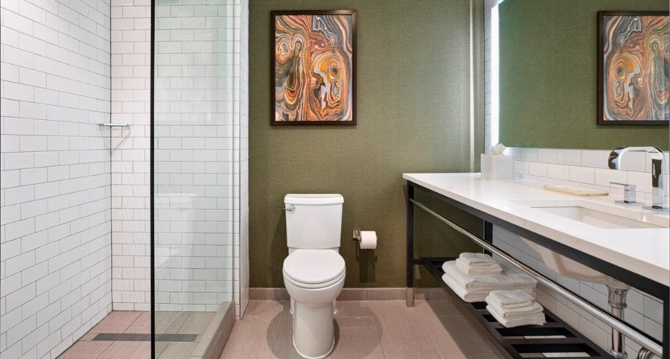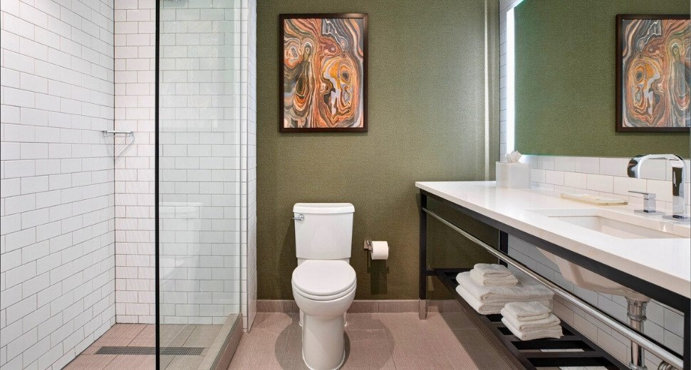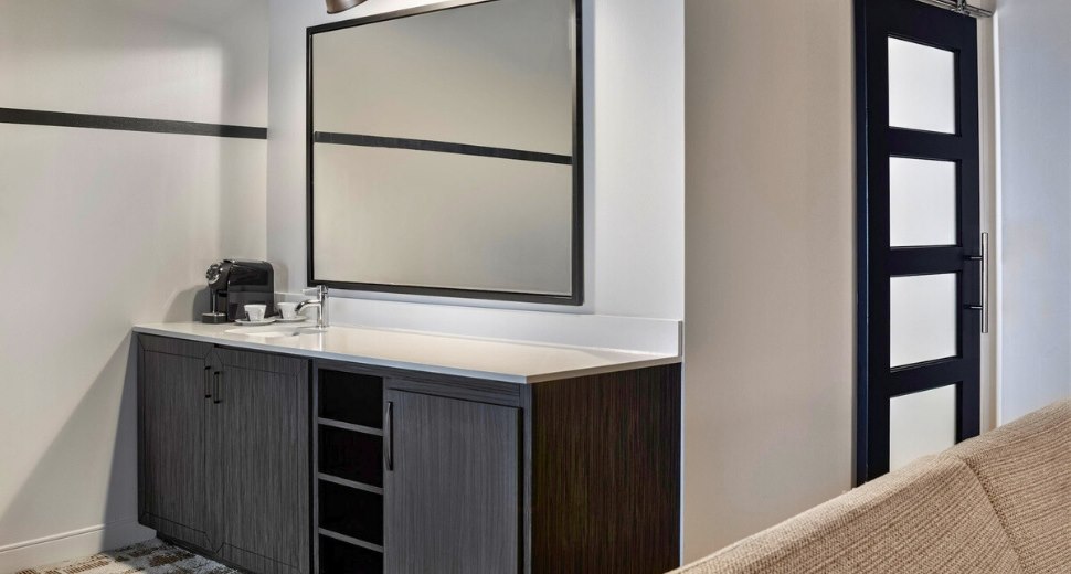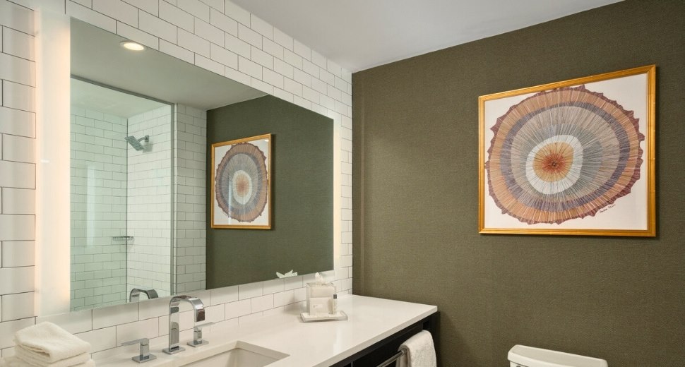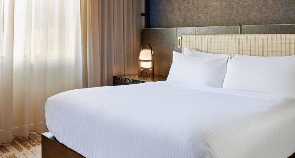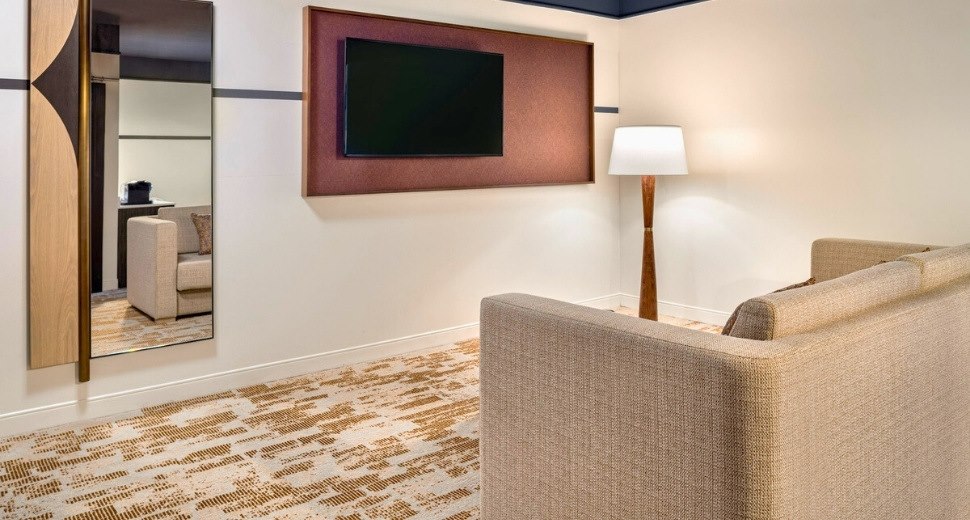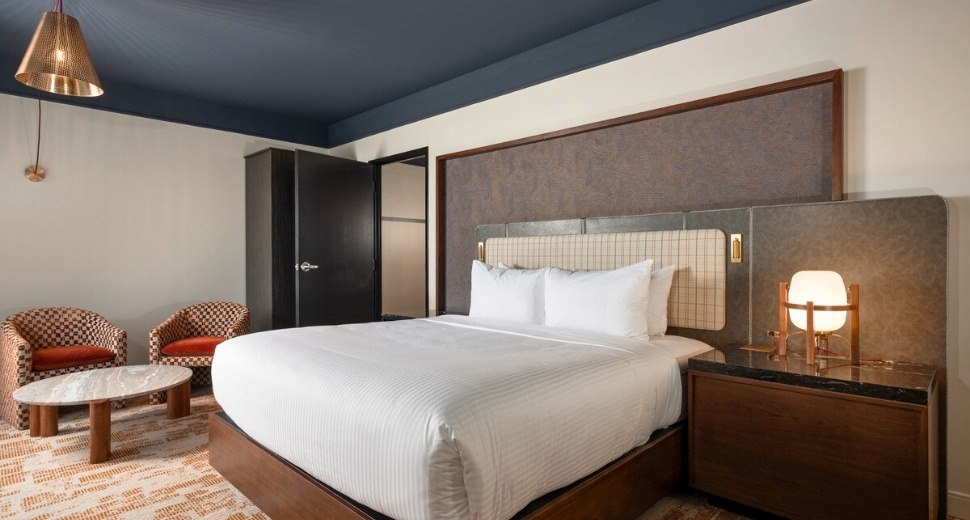 Choose from king or two-queen layouts, refresh in spa-inspired bathrooms with walk-in showers, and unwind with curated touches—like spacious seating areas, 55" streaming-enabled TVs, and soft, sophisticated finishes throughout.